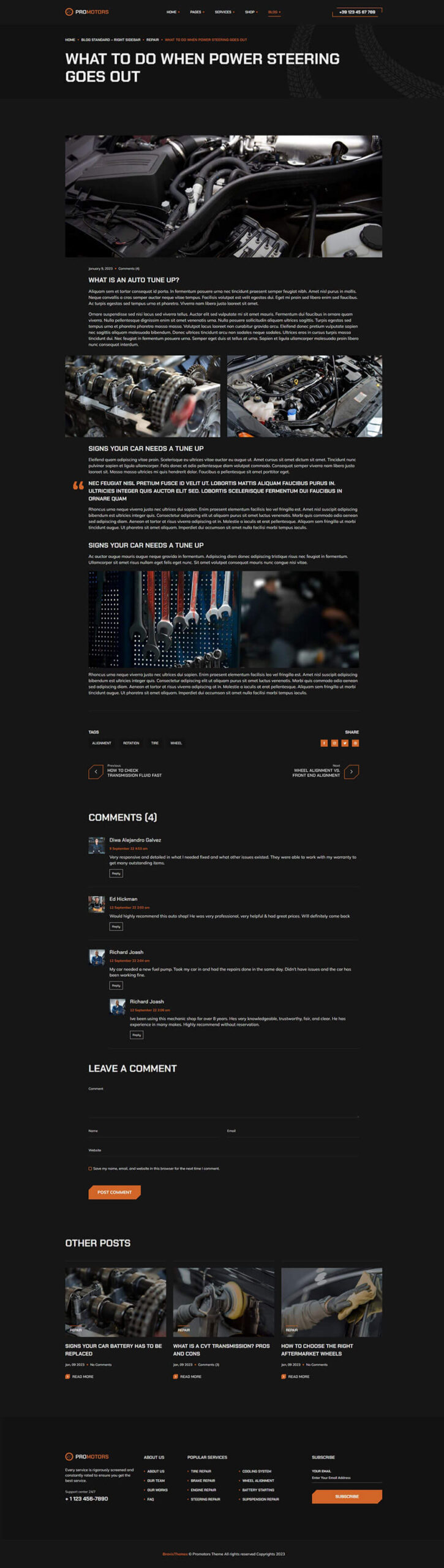 ProMotors comes with necessary features for Consulting websites such as about pages, awesome blog pages and more